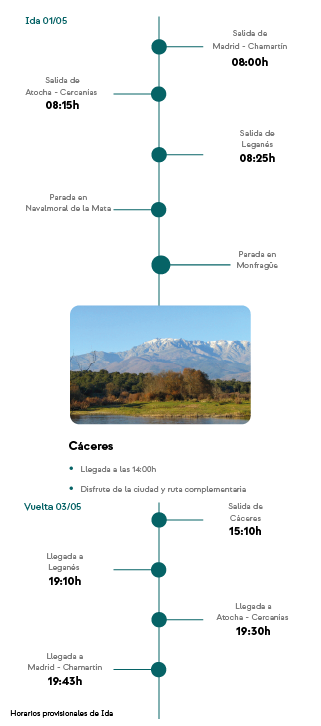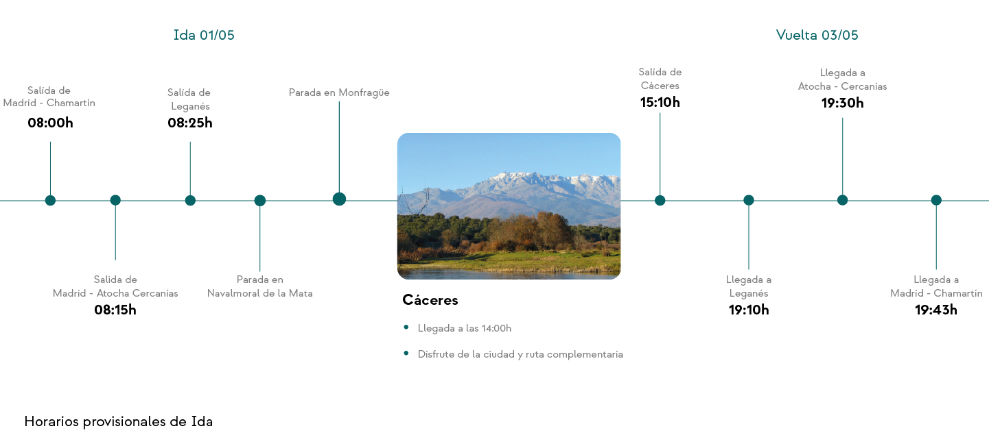 | 14:00h | Cáceres | 15:10h |